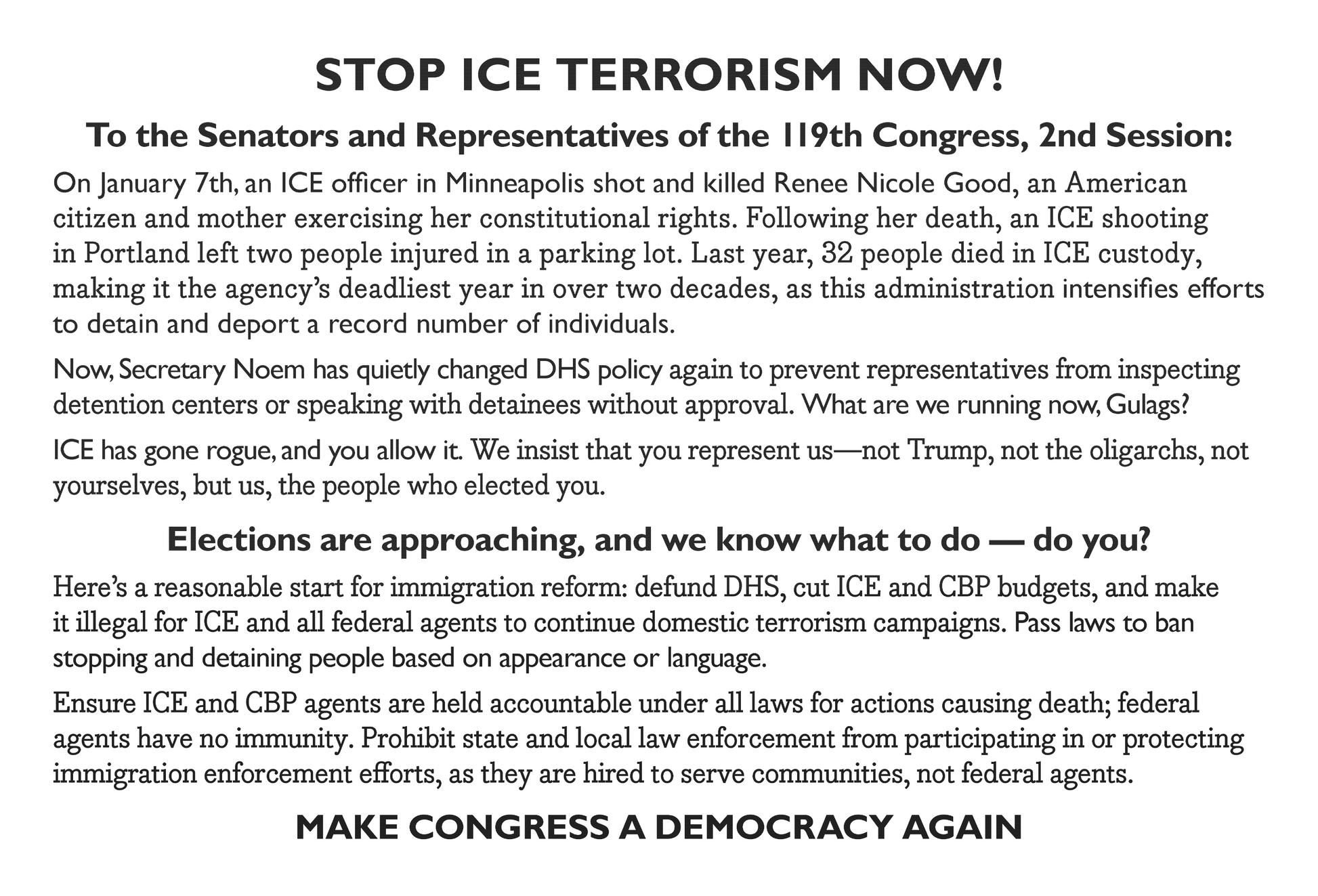 Card Campaign for Democracy Card 30: Stop ICE: Postcard to Congress (pack of 10)